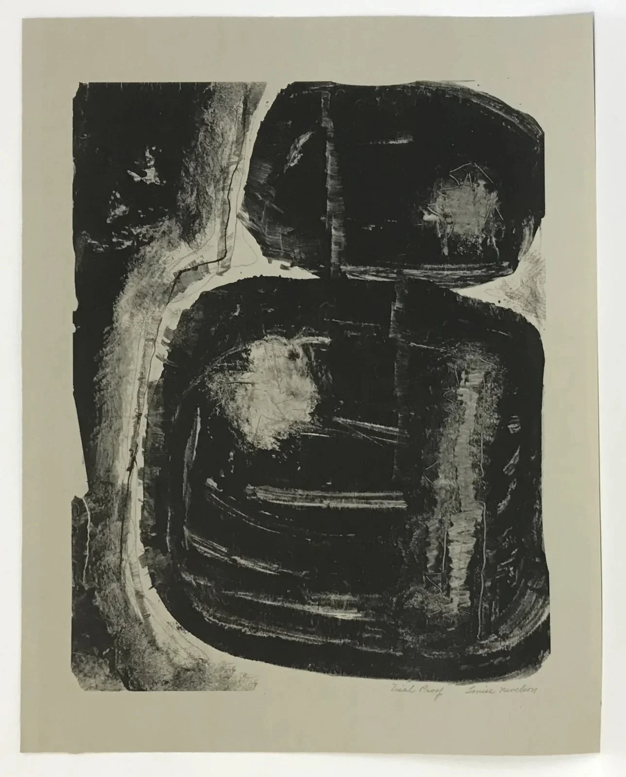 Louise Nevelson, known for her groundbreaking sculptures made from found objects, collaborated with Irwin Hollander, a master printer, to translate her intricate wood constructions into prints. Their partnership produced prints that captured the essence of Nevelson's three-dimensional assemblages, showcasing her unique approach to form and texture. Hollander's technical expertise in intaglio and lithography allowed Nevelson's iconic black-and-white palette to shine, emphasizing the stark contrasts and dynamic compositions for which she is renowned. Their collaborations underscored Nevelson's ability to extend her sculptural vision into the realm of printmaking with striking results.